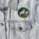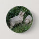 This awesome Button features a photograph of a pair of cute fluffy sheep. The sheep are surrounded by wild flowers and long grass and are standing underneath a tree and reaching up, greedily eating some leaves. They have thick white coats of wool and very cute faces.