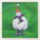 Cute Sheep in Santa Hat On Green Glass Coaster