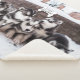 Cute, personalised sherpa blanket for puppy dogs this winter- Full photo of litter of cute, Alaskan Siberian Husky puppies. Personalised puppy dog's name at the top on a dog bone. Cute winter dog blanket to keep your furbaby warm or Christmas gift for Siberian Husky dog owner.