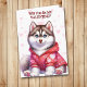 Cute Siberian Husky Puppy in Sweater Valentine Holiday Card