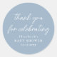 Give your baby shower favours a personalised touch with this simple blue thank you sticker. The colour and design matches the Lea Delaveris Design gingham baby shower collection, but the dusty blue colour and simple style can coordinate with many other baby shower themes and designs. This cute and simple sticker says "thank you for celebrating" and the text can be edited to include name, date and more. Make your baby shower and mum-to-be celebration extra special with this cute light blue thank you sticker.
