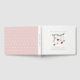 A beautifully presented guest book which came with a lovely gift box for storage. The book was hard back so stayed fresh after being handed around to all our wedding guests. We had lots of compliments about the design which went perfectly with our theme. Perfect, no issues at all with the printing. It arrived on time and came well packaged.