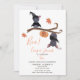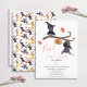 Two cute! This 2nd birthday party invitation for a boy or girl features two adorable bats on a branch with a carved pumpkin, and is personalised with hand-lettered script typography and a chic modern sans serif in orange and black. The back of the card features a matching all-over bat motif. Copyright Elegant Invites, all rights reserved.