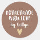 A personalised "homemade with love" sticker with a gold heart on a brown terra cotta textured background. Make it yours by adding your own name. A pretty finishing touch for all of your homemade gifts. Designed for you by Blackberry Boulevard.