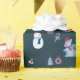 Modern Elegant simple. with blue, orange colours featuring pine trees, stars, snowman, cute bear, deer, mountains and cute other illustrations on ice blue, navy blue . bold minimal graphic design . perfect for your next Christmas eve to wrap your gifts for every one you love and your family