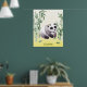 Illustration of a black and white cute panda bear sitting near green watercolor bamboo. It is an excellent design for panda lovers or fans of super cute animals. The colors are pastel and look like a watercolor painting. This print will brighten up any kid's bedroom or playroom. Can be personalized with your child's name.
