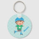 Cute little skater boy with blue helmet, matching protective gears and roller skates. Personalise the keychain including the alphabet on the boy's tee!