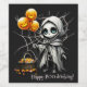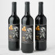 Cute Skeleton Girl with Pumpkin Balloons Wine Label