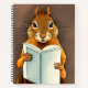 Cute watercolor sketch of a squirrel reading a book with brown background.