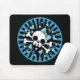 Cute skull and crossbones with bow surrounded by hearts and stars in hues of blue.