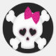 Cute skull with a pink bow. Definitely for the girly girl. Design available on t shirts, totes, stickers, buttons, magnets, hats and much more. artwork©delightful-doodles