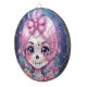 This artwork features a playful and charming skull adorned with vibrant pink hair, accessorized by a cute bow. Surrounding the skull are an array of colorful flowers, adding a whimsical and cheerful touch to the design. The overall style is cartoon-like and lively, making it especially appealing to children and those who enjoy fun, girly aesthetics.