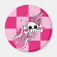 Cute skull and crossbones with bow and girly pink guitar surrounded by hearts and stars.