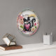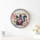 This charming circular wall clock showcases a whimsical watercolor-style illustration of an adorable baby skunk with large, expressive eyes. The skunk sits holding a sparkling pink heart featuring the embossed text "BE MINE" in white. The phrase "Be mine" is also written in a delicate black script font above the character. Surrounding the skunk are soft pink and white roses with green leaves, set against a background of artistic pastel splashes. The entire design is enclosed within a multi-colored decorative border featuring pink, teal, and gold tones. A clear clock face border displays black numbers from 1 to 12, with black clock hands centered over the main illustration.