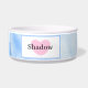 This sweet pet bowl features a photo of a light blue sky with a heart and customisable name.