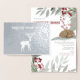 Cute Sleeping Baby Deer & Reindeer Red Christmas Berries Grey Foliage Silver Foil Card.