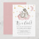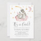 Cute Sleeping Racoon Pink It's a Girl Baby Shower Invitation