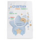 Cute and colourful baby boy birth stats design with stars and dots in blue, beige and cream.