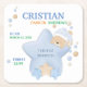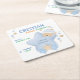 Cute Sleeping Teddy Bear Baby Boy Birth Stats Square Paper Coaster