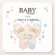 Cute Sleeping Teddy Bear Twins Baby Shower Square Paper Coaster