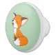 Cute sleepy little fox with large ears and bushy tail is sitting and yawning.