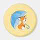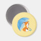 Cute Sleepy Little Fox under Umbrella on Yellow Magnet