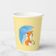 Cute Sleepy Little Fox under Umbrella on Yellow Paper Cups