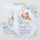 Cute Sleepy Teddy Bear Blue Floral Boy Baby Shower Thank You Card