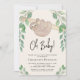 This cute gender-neutral Baby Shower invitation is decorated with a watercolor baby sloth and jungle leaves on a soft cream background.