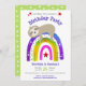 “Let’s hang. You’re invited to a birthday party”. Here’s a great way to celebrate your child’s birthday with friends and family. Send out this cute, fun, simple, festive, modern, personalised birthday party invitation. A sweet, playful visual of a cute, kawaii, sloth on a colourful, boho rainbow with grey and purple handwritten typography announces the birthday of your offspring. An adorable white star pattern overlaying spring green is on the back. This charming invitation is guaranteed to set just the right tone for your event! Matching and coordinating plates, napkins, stickers, thank you notes and other birthday goodies are also available in this special and fun collection.