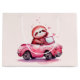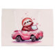 Gift bag with an adorable illustration. A happy looking sloth sitting in a sporty pink convertible. Waving as he drives by. With hearts floating upwards.