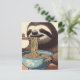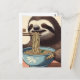 Cute Sloth Eating Ramen Woodblock Print Postcard