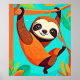 Cute Sloth Hanging in Jungle Poster