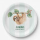 Cute Sloth Hanging Upside Down Watercolor Birthday Paper Plate
