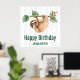 Cute Sloth Hanging Upside Down Watercolor Birthday Poster