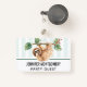 Name badge with an adorable sloth hanging upside down from a tree branch. Tree branch is decorated with tropical leaves and berries.