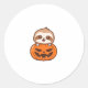 Cute Sloth with Pumpkin Halloween Cartoon Vector I Classic Round Sticker