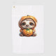 Cute Sloth with Pumpkin Halloween Cartoon Vector I Golf Towel