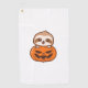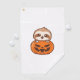 Cute Sloth with Pumpkin Halloween Cartoon Vector I Golf Towel