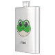 The product is a good size and came exactly as it was pictured. The lid is not attached to the flask, which could be dangerous on drunken nights... The print came out surprisingly well and looks very sharp. Would definitely recommend.