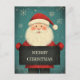 This Christmas postcard showcases a cute illustration of Santa Claus holding a black banner with a customisable message.