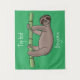 Cute smiling sloth on bamboo cartoon illustration tapestry