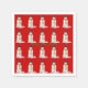 This cute snowman is looking very smart in his stripy scarf and his black hat. The happy snowman has a smile on his face as he looks down to his stripy Christmas stocking, that he’s carefully hung on a tree branch that’s sticking out from the thick carpet of snow, he’s smiling because he’s looking forward to santa filling his stocking. These original customisable Christmas paper napkins will look great on the festive Christmas table. you can personalise the snowman napkins with your pown text.