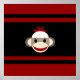 Cute Smiling Sock Monkey Face on Red Black Poster