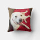 Cute Smiling White Puppy Dog Christmas Red Cushion
