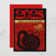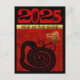 In a square are one black Snake paper-cut, placed in the centre looking at a golden ornament inside of which is the second snake with ideogram. Behind the scene there is a red background on which decorative and ornate letters form the words: SNAKE YEAR. Design on vertical holiday postcard with large red customisable 2025 on black background. You can easily change number (font, colour, size and position) by clicking the customise button. Matching holiday postcard and more... Perfect for Chinese New Year of the Snake 2025 or birthday (people born in Snake Year). --------- "The snake (蛇) is the sixth of the twelve-year cycle of animals which appear in the Chinese zodiac related to the Chinese calendar.