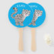 Cute snow leopard cartoon illustration hand fan