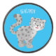 This cute snow leopard is on the prowl! Drawn in fun cartoon illustration style.