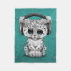 Cute Snow leopard Cub Dj Wearing Headphones Blue Fleece Blanket