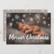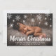 Announce the birth of your new baby boy or girl with this cute holiday birth announcement card featuring a simple design with the handwritten greeting "Merrier Christmas" and snowflakes drawn in chalk, along with your message and baby's birth stats, over your favourite horizontal newborn photo. The backside has a snowflake pattern over a medium beige colour. You may change the colour of the background by clicking the "customise" button.